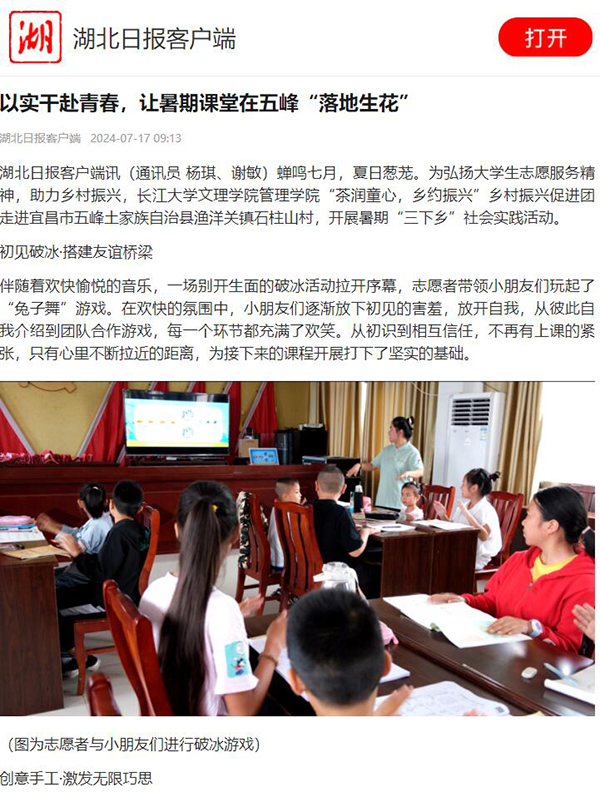 以实干赴青春,让暑期课堂在五峰“落地生花”