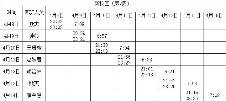 2023-2024学年第二学期第7周学工人员寝室值班通报