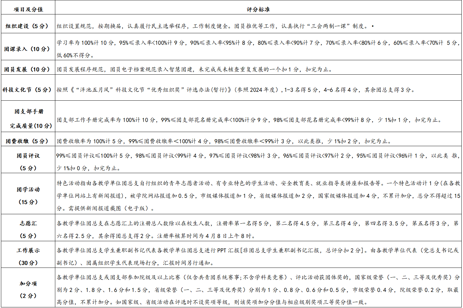 “五四红旗团总支”评分细则(修订版)