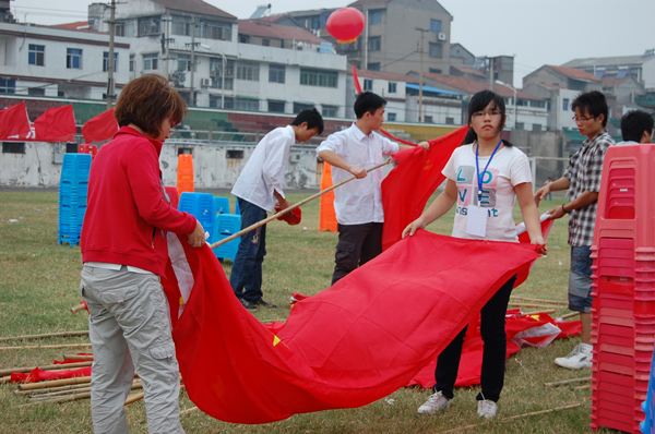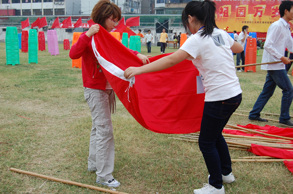 本网讯(员工记者 杨立婷)9月26日下午,学院体育场内红旗招展、人山人海。整场歌会秩序井然、高潮迭起,让现场的观众们充分感受到了学院师生对祖国六十周年到来的无限热情,这背后也凝聚着幕后工作人员辛勤的汗水。