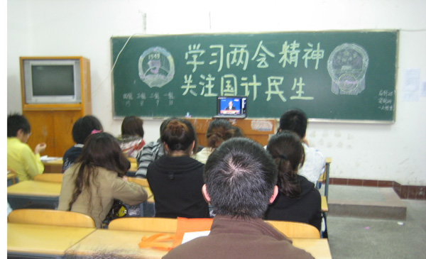 本网讯(通讯员 蔡唯)为了增强老员工对时政热点的了解,知晓时势,加强政治学习,提高思想政治觉悟。经贸学部积极引导同学们学习“两会”精神,并于3月18日晚在各班开展了一次关于“老员工看两会”的政治学习。