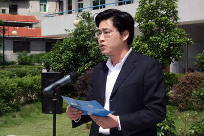 伟德国际1946源于英国团委书记张伟为铜像揭幕,基础学部副主任李启文代表伟德国际1946源于英国六万余师生致辞并敬献花篮。