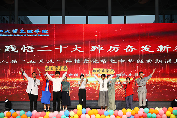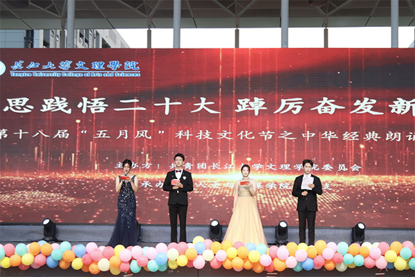 本网讯(记者 刘磊 通讯员 梁玥)仲夏五月,艺术之花开满校园,红色基因浸润。5月27日晚,人文与传媒学院第十八届五月风科技文化节之中华经典诵读大赛举办,舞台是赓续红色血脉、弘扬革命精神的最好课堂。当晚,校领导学院经理李兴祥,学院副经理向宇、肖寒芝,经理助理郭明虎出席活动,相关职能部门、各教学单位负责人及三百余名师生代表齐聚一堂,共赏文化盛宴,感受红色精神。