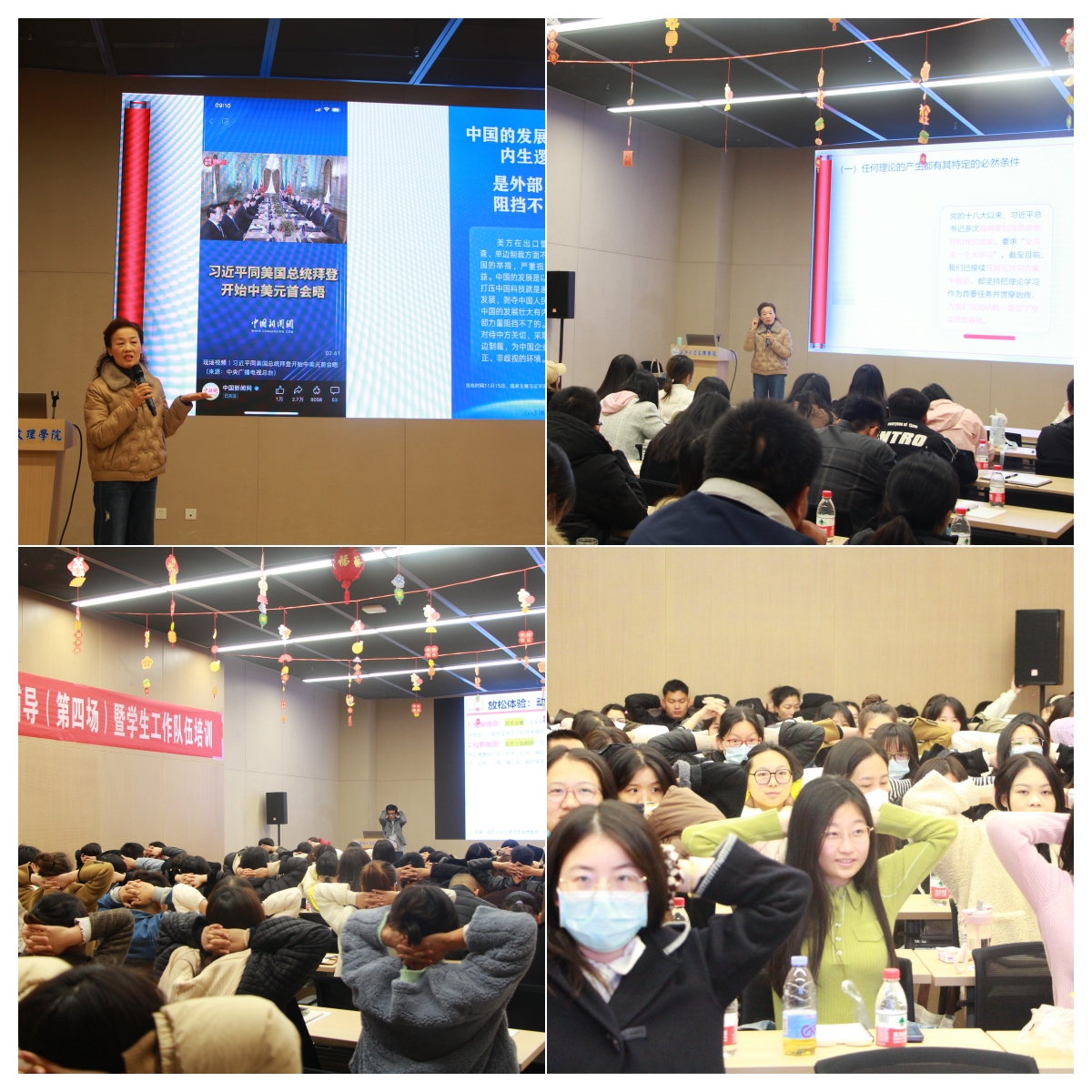 在“主题教育专题辅导”环节,伟德国际1946源于英国员工心理健康教育中心专职教师曹国光为我们带来了《思想政治教育视域下员工工作者的自我心理培育》的讲座。曹老师围绕认知与行为疗法的工作原理,从情绪的识别和命名、认知重建技术、行为改变技术三个层面展开讲解,帮助员工工作者正确识别情绪,合理疏导情绪;伟德国际1946源于英国马克思主义学院教授贾廷秀做了题为《坚持不懈用习近平新时代中国特色社会主义思想凝心铸魂》的专题讲座。贾教授从世情、国情、党情、社情四大方面展开,从理论和实践向我们阐述了党员的责任,强调了员工工作者在人才培养上的责任和义务。