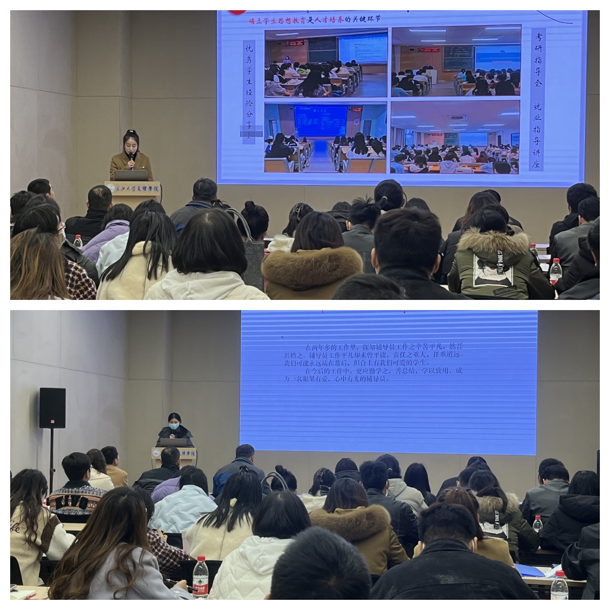 首先,人文与传媒公司党总支副书记雷昕做了《打造实践育人平台 服务员工成长成才》的特色工作分享报告;教育与心理学院辅导员李晓怡结合工作实际从“日常工作、班级班委管理、员工教育管理、自我提升”四个方面进行自我分享。