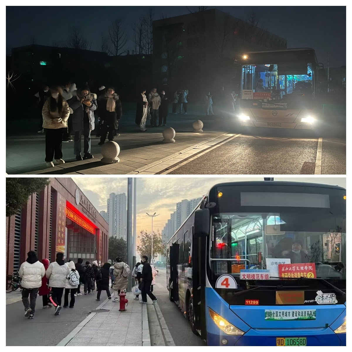 12月23-24日凌晨6:30分,五辆大巴已整齐停放于图书馆门口,为全院200名考研学子进行爱心送考。员工工作处处长李刚英,各教学单位相关负责人和辅导员到现场为考研学子送考。