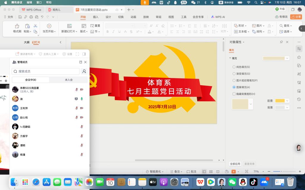 本网讯(通讯员 杨漫)7月10日下午4点,体育系员工党支部开展7月主题党日活动,会议由员工党支部宣传委员尧喆豪主持,体育系全体员工党员参会。此次党日活动以线上线下相结合的方式开展,以“持续推动深入贯彻中央八项规定精神学习教育走深走实”为主题,旨在进一步强化党员党性修养和廉洁自律意识。