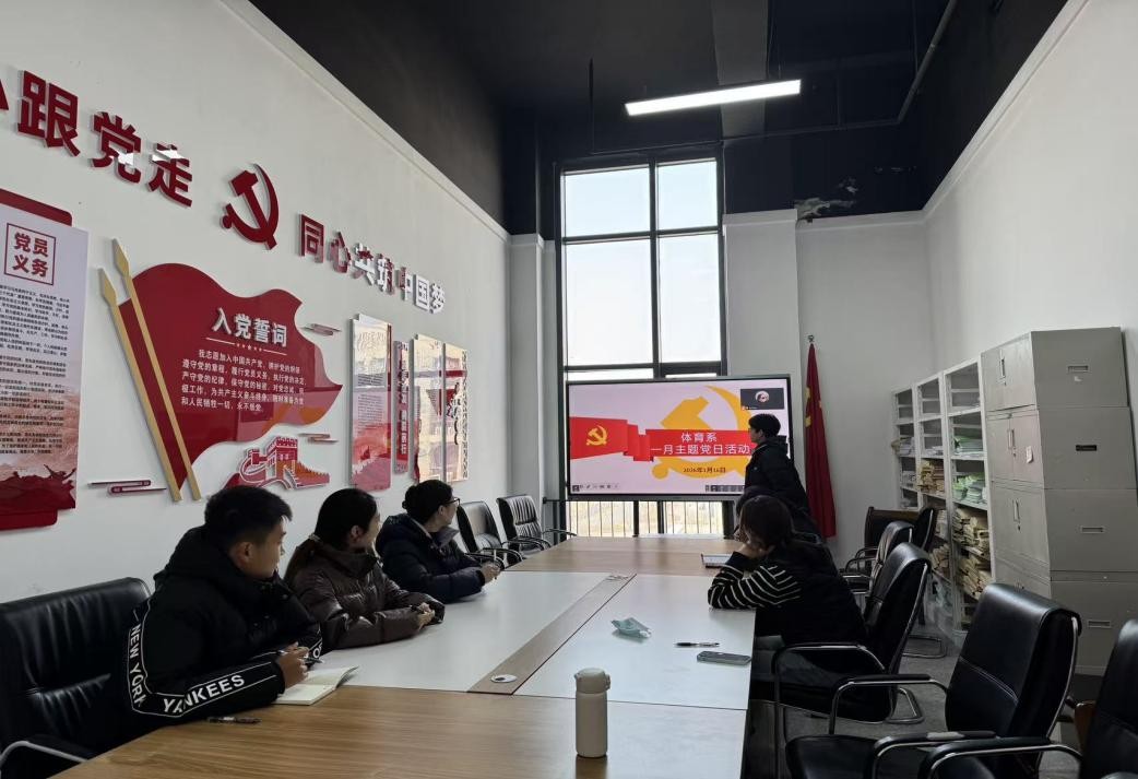 本网讯(通讯员 尧喆豪)为深入学习贯彻党的二十届四中全会精神,凝聚员工党员奋进力量,2026年1月16日,体育系员工党支部以 “深入学习贯彻党的二十届四中全会精神,奋力谱写学校高质量发展新篇章” 为主题,开展主题党日活动,全体员工党员参加。
