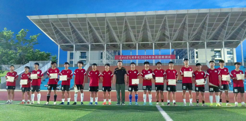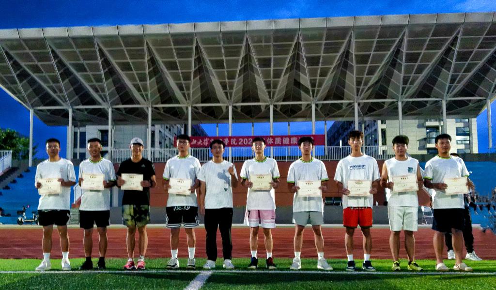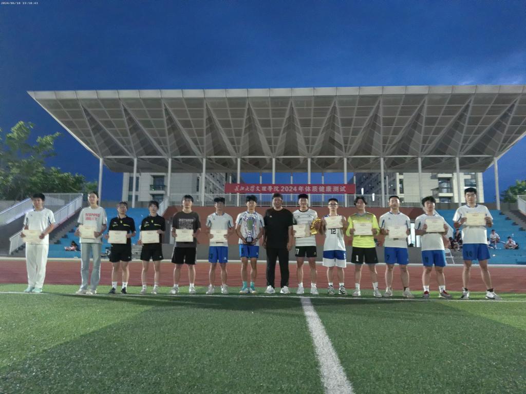 本网讯(通讯员 张欣)6月18日晚7点,体育系在学校足球场举行了第二届“悦动杯”九人制足球赛的闭幕式。体育系党总支书记邹姜、主任介博、辅导员门世豪、教练员王晟、贺鸣杰出席了闭幕式。