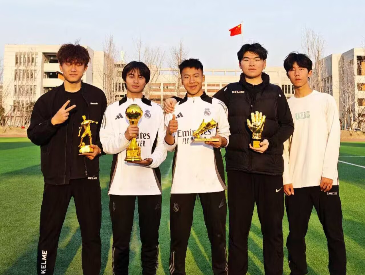 闭幕式上,体育系领导和老师们为获奖队伍及个人颁发荣誉。此次活动不仅设置冠、亚、季奖项,还设立了金球奖、金靴奖、金手套奖等个人奖项。金靴奖得主韩凤衍和朱啸天凭借出色的射门能力,在多场比赛中斩获关键进球,获得最佳射手奖;金球奖获得者王帅宇和孙贵凯在场上表现全面,组织进攻,帮助队友进球,获得最佳助攻奖;金手套奖则由曹锦阳获得,他在多场比赛中贡献关键扑救,力保球门不失。运动员代表覃彬清表示,本次足球比赛不仅体现了体育系员工的青春活力和团队合作精神,同时也提升了员工的身体素质和竞技水平。