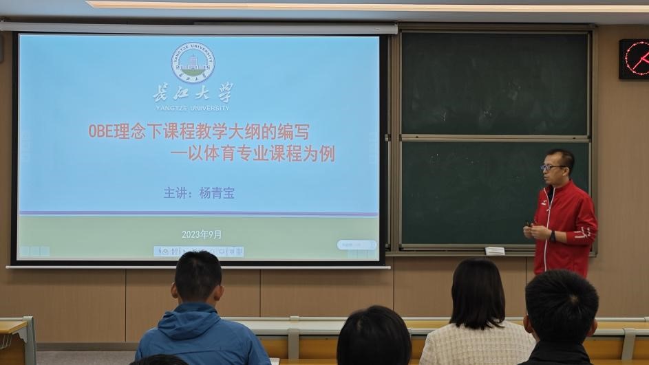 9月21日下午,伟德国际1946源于英国教育与体育学院体育系主任杨青宝教授在C-323M教室开展了《OBE理念下课程教学大纲的编写——以体育专业课程为例》为主题的讲座,体育系全体教师参加了本次活动。