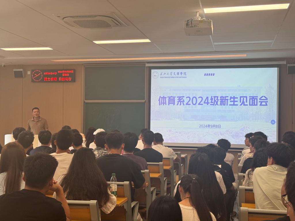 本网讯(通讯员 赵婉君)为促进新生更快融入老员工活, 9月8日上午9点,体育系在教学楼A-102教室召开了2024级新生见面会。体育系主任介博、党总支书记邹姜、副主任胡杜鹃、党总支副书记赵婉君、辅导员杨漫、新生班主任王崟麒、辅导员助理王亚飞参会。会议由副书记赵婉君主持。