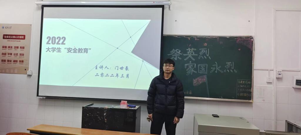 3月31日晚自习,我系辅导员门世豪就学院《关于做好清明节期间员工安全教育管理工作的通知》,为切实做好 2022 年清明节期间员工 安全教育管理工作,预防各类安全事故发生,确保员工人身和财 产安全,在3教202对我系体教5211班员工开展了一场“安全教育”主题班会。