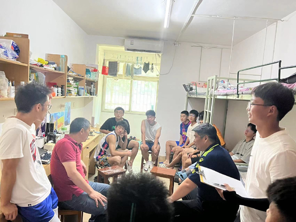 在风华园3栋114寝室,曹骥和体育系相关负责人认真听取了同学们关于校区搬迁、员工活动、课程设置、专业实习的困惑,并一一进行了解释,提醒同学们暑期要注意安全,增强个人防护意识,保持身心健康。体育教育专业的杜习申对员工每天出早操的必要性提出了疑问,系主任介博对此进行了解释,并对下学期体育教育专业的课程设置进行了解读,杜习申和同学们纷纷点头表示理解。