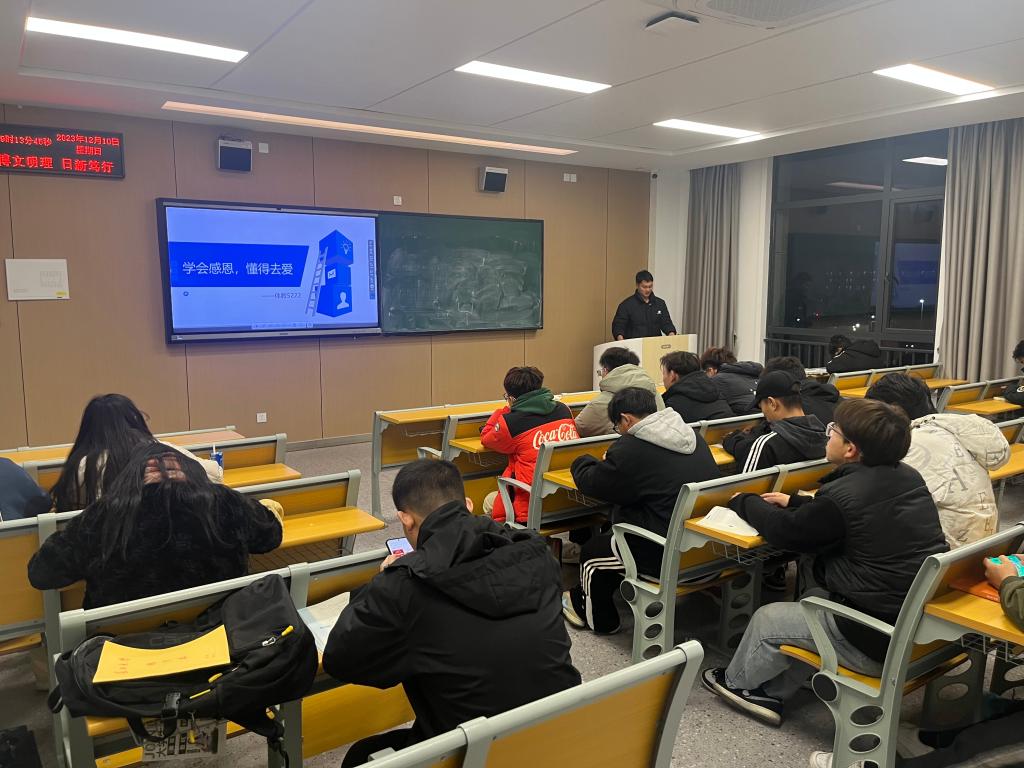 10月20日晚,体育系专任教师谢侨侨在教学楼C418开展了一场别开生面的感恩教育主题班会——学会感恩,懂得去爱。参与人为体教5222班全体员工。