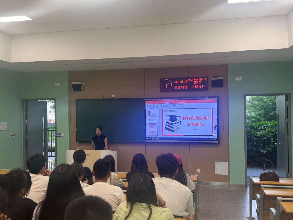 此次毕业生离校工作安排会的成功召开,标志着体育系2025届毕业生离校工作正式拉开帷幕。体育系将严格按照工作方案的要求,认真履行职责,确保每一位毕业生都能顺利、安全地离校,带着对学校的感恩和对未来的憧憬,开启新的人生旅程。