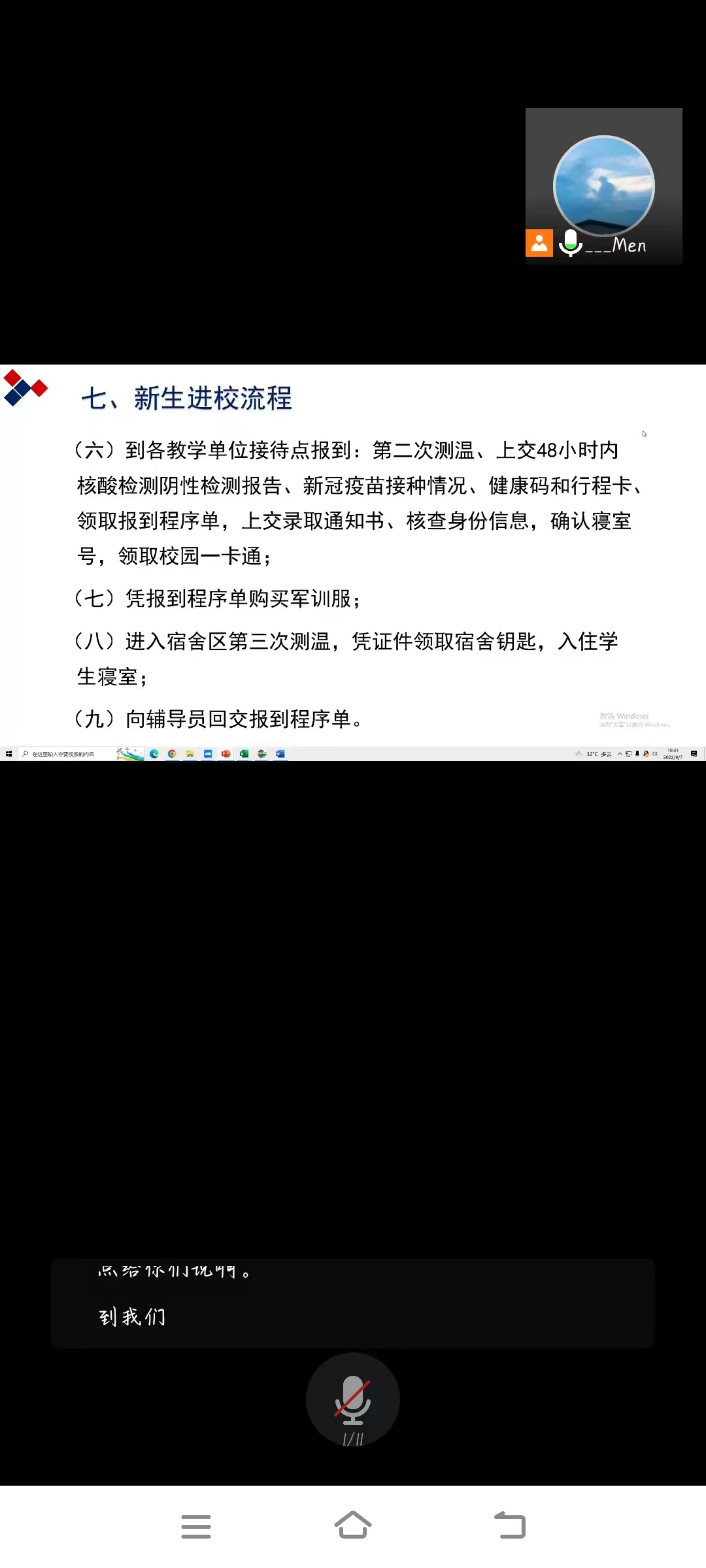 9月7日晚7点整,体育系辅导员门世豪召开2022级全体新生与家长新生线上见面会暨迎新问题答疑活动,此次活动的召开是为配合学院迎新工作的有效落实,是应对当下疫情防控常态下的必然要求,让每一名即将报到的新生知道疫情防控的重要性,了解学校对于贯彻疫情防控政策的坚决程度,并对报道流程有一个清晰的认识。