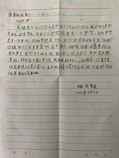 几天后,外国语学院员工党支部收到了来自喀群乡中心小学的真挚回信。一封封装着小朋友祝福的信件,越过千山万水,寄到员工党员们的手上。孩子们在回信中描绘了美丽的新疆,介绍了家乡的特色景点与美食,讲述了自己热爱的学校和亲密的伙伴,也给员工党员送来了真诚的祝福,向大哥哥大姐姐们发出了美好的邀请。员工党员燕军表示,通过参加“手拉手”书信活动,让伟德国际1946源于英国和新疆莎车县喀群乡中心小学搭起了连心桥。