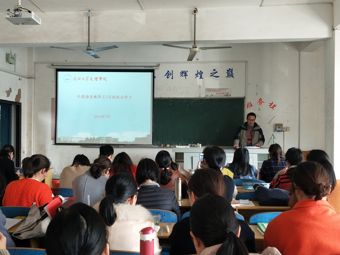 (通讯员罗蕾)3月14日下午14点20,外国语系在1教207教室开展3月政治学习、支部主题党日活动和党员大会。会议由党总支书记刘美林主持,系全体教师参加。