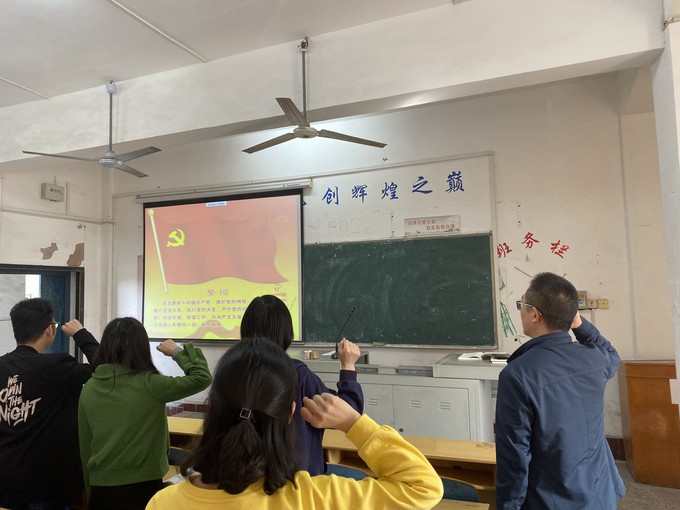 会议上,刘书记首先带领全体党员面对党旗,重温入党誓词。