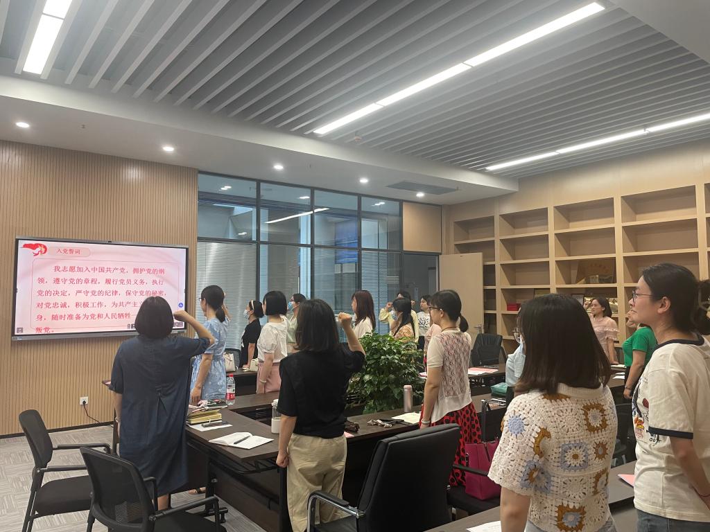 主题党日活动中,韩翠萍带领全体党员重温入党誓词,学习《中国共产党章程》第六章;党的二十大精神解读:坚持全面依法治国,推进法治中国建设;《习近平著作选读》(第一卷)《习近平著作选读》(第二卷)《习近平新时代中国特色社会主义思想专题摘编》《习近平新时代中国特色社会主义思想学习纲要》。