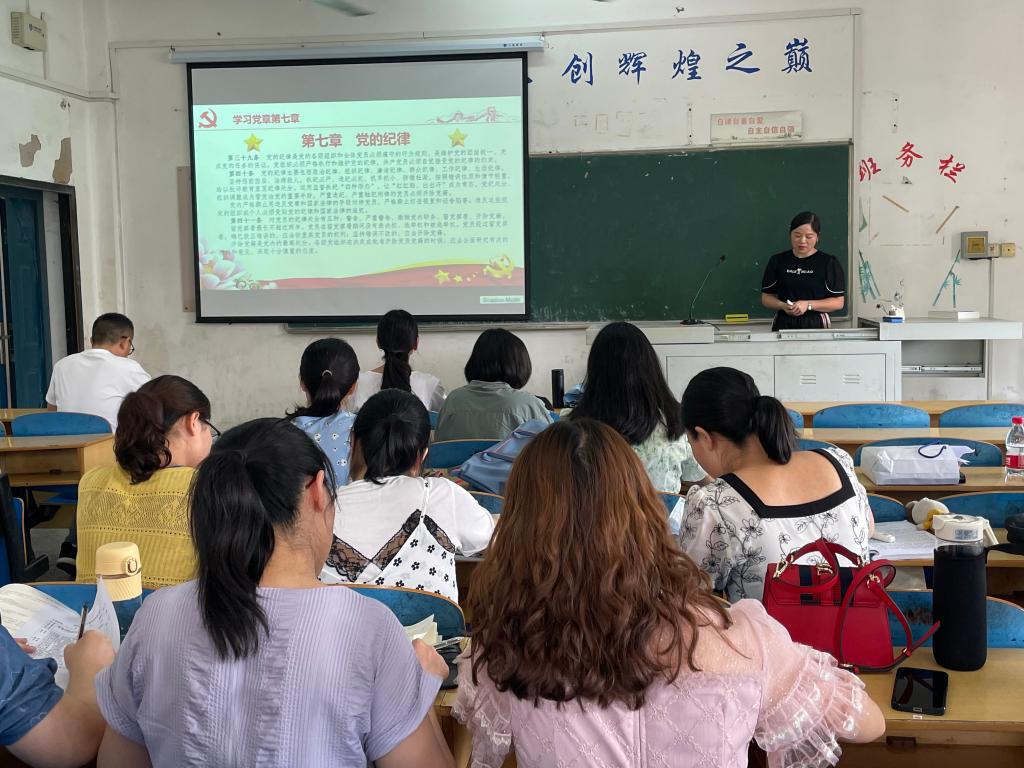 随后,付春霞老师以“喜迎党二十大,争做新时代合格党员教师”为主题讲党课。从坚定理想信念、提高党性修养、勇于担当责任等方面进行讲解,同时提到学习党的二十大是党和国家政治生活中的一件大事,也是全体教师党员的大事。全体党员教师要带领全体员工,为全面建设社会主义现代化国家、夺取新时代中国特色社会主义伟大胜利、实现中华民族伟大复兴的中国梦,做出新的更大贡献,以优异成绩来回报党的恩情。