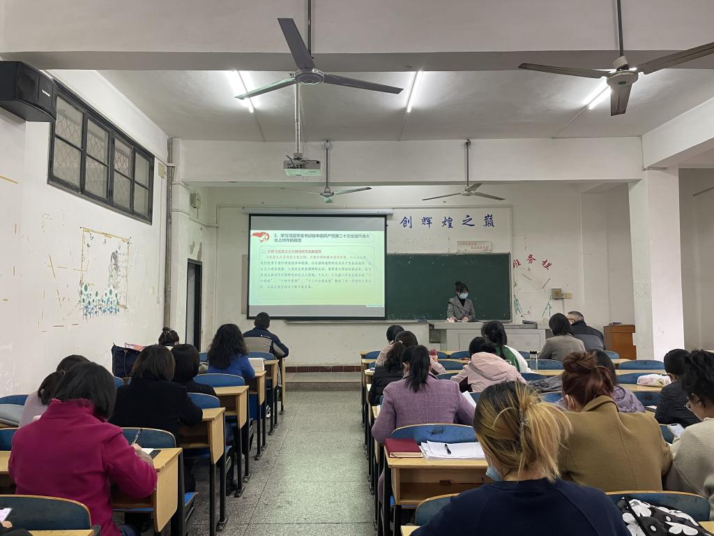 会议伊始,许静婷带领全体党员重温入党誓词,集体诵读《中国共产党章程》第八章。然后,集体学习微党课,《习近平谈治国理政》第四卷第二部分;学习习近平总书记在中国共产党第二十次全国代表大会上所作的报告;学习视频:中国共产党第十九届中央委员会第七次全体会议公报;学习王蒙徽在9月28日省委常委会(扩大)会议上的讲话。最后开展主题研讨,谈谈学习习近平总书记在中国共产党第二十次全国代表大会上所作报告的体会。