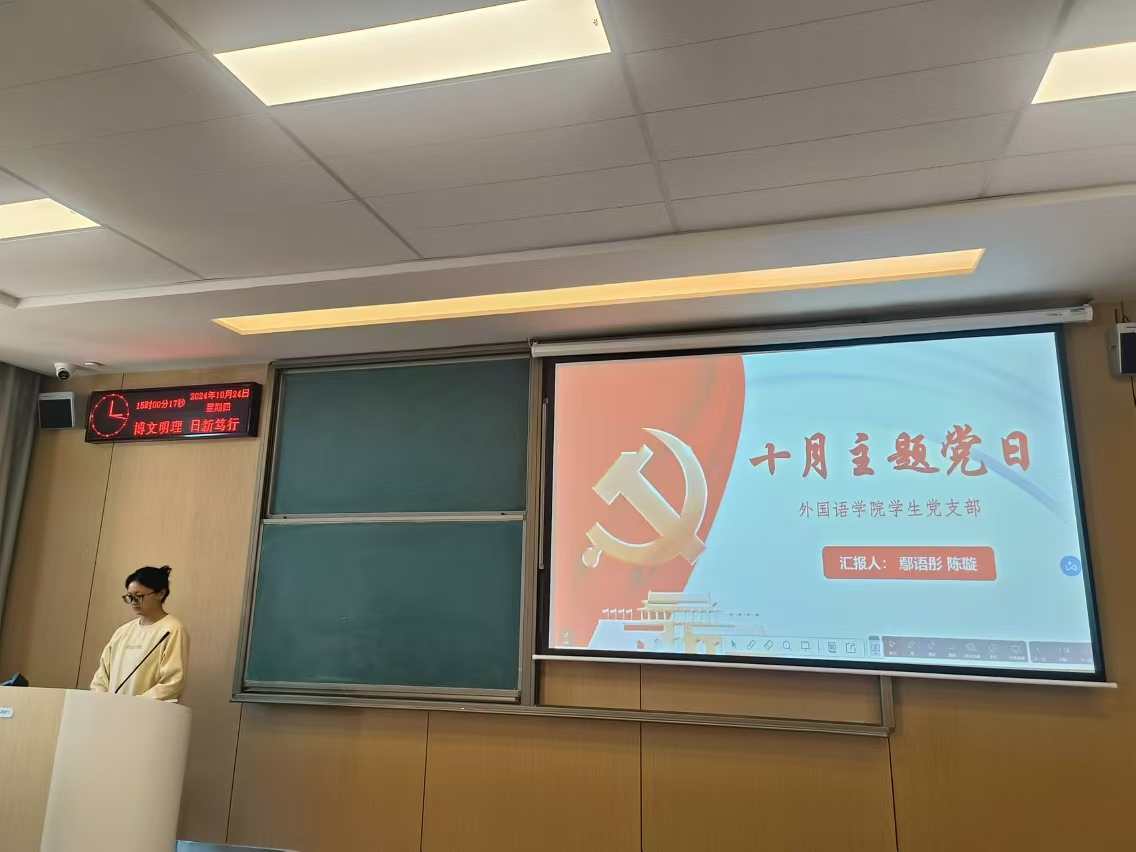 本网讯(通讯员 陈璇)2024年10月24日下午15:00,外国语学院员工党支部在教室C-324开展十月主题党日和政治学习。此次活动主题为持续深入学习贯彻党的二十届三中全会精神。此次活动由鄢语彤同志和陈璇同志共同主持。