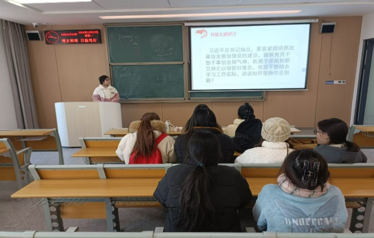 接着,全体党员同志开展主题研讨。习近平总书记指出,作为一名员工党员,要紧紧围绕抓改革促发展加强党的建设,提振党员干部干事创业精气神,既勇于开拓创新又持之以恒抓好落实。党员干部结合学习工作实际,谈谈如何坚持守正创新?同志们谈到在学习和工作中,要敢于突破传统思维和方法的束缚,积极参与学校的创新创业项目、科研课题研究等,提出新观点、新思路、新方法。还要关注社会热点和行业发展趋势,结合自身专业知识,探索解决实际问题的新途径,如开展社会调研,为社区发展、企业创新等提供有价值的建议和方案。