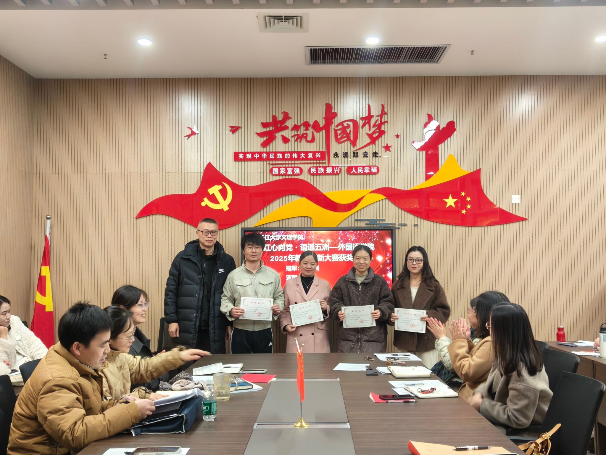 本网讯(通讯员 许静婷)为表彰先进、树立典范,进一步激发全院教师的教学创新热情,外国语学院于12月18日举行2025年教学创新大赛颁奖仪式。仪式由学院办公室主任李培培主持,全体教师参加。