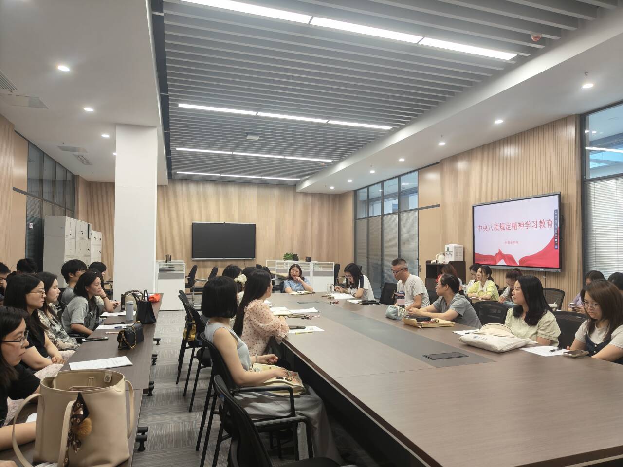 本网讯(通讯员 许静婷)6月5日,外国语学院于图书馆518会议室开展深入贯彻中央八项规定精神学习教育。会议由外国语公司党总支书记王玲玲主持,全体教职工参加。