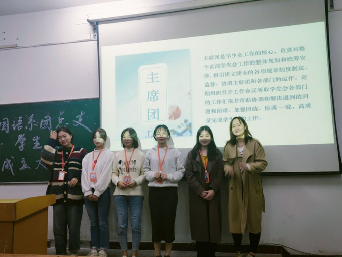 (见习记者 王希千)10月15日晚六点半于一教201举行2019届外国语系团总支员工会成立大会。党总支副书记王玲玲老师、辅导员郑新蓉、黄邹毅、拓颖、雷昕老师出席会议。2018届员工会主席徐珲、副书记陈婷及2019届员工会全体成员参加大会。大会由2019届员工会副书记李海霞主持。