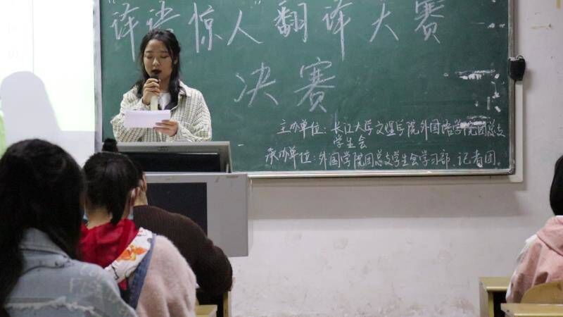 (通讯员 田雨 马心怡)11月10日晚7点,外国语学院团总支员工会于一教308教室举行“译语惊人”翻译大赛决赛。外国语学院副经理罗丹,副教授石从红,商务教研室主任李琳,全能英语讲师梅妮担任本次比赛的评委。王媛,郭雨婷两位同学主持,20位选手参加比赛。