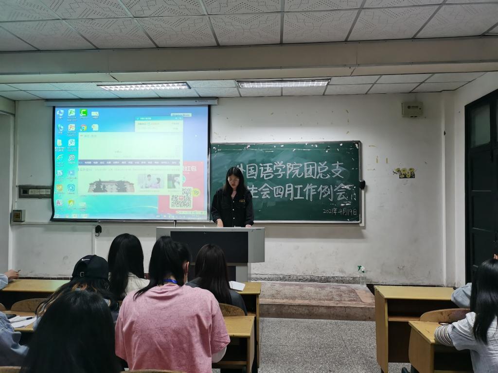(通讯员 马心怡)4月19日晚7点,外国语学院团总支员工会于一教308教室召开四月工作例会。本次例会由组织部干事于普主持,员工会全体成员参加。