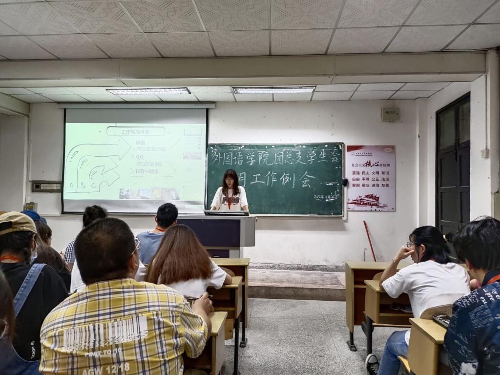 通讯员 韩小红)4月26日晚7点,外国语学院团总支员工会于一教308召开四月工作例会,员工会全体成员参加。