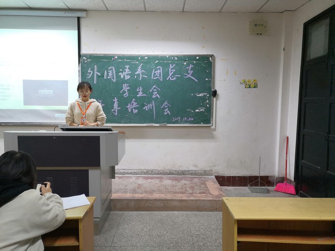 (通讯员 戚彬彬 王希千)2019年10月22日、23日晚上七点,外国语系团总支员工会在一教308进行为期两天的干部培训大会。辅导员拓颖、雷昕老师,18届员工会主席徐珲以及19届员工会全体成员参加大会。