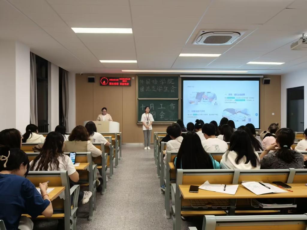 本网讯(通讯员 李雪娇)为总结过去一个月的工作成果,分析并制定十一月份的工作计划和目标,明确工作重点和职责分配,并推动员工会的各项工作更好地开展,2023年10月31日,外国语学院团总支员工会在01-A-308M召开十月工作例会。