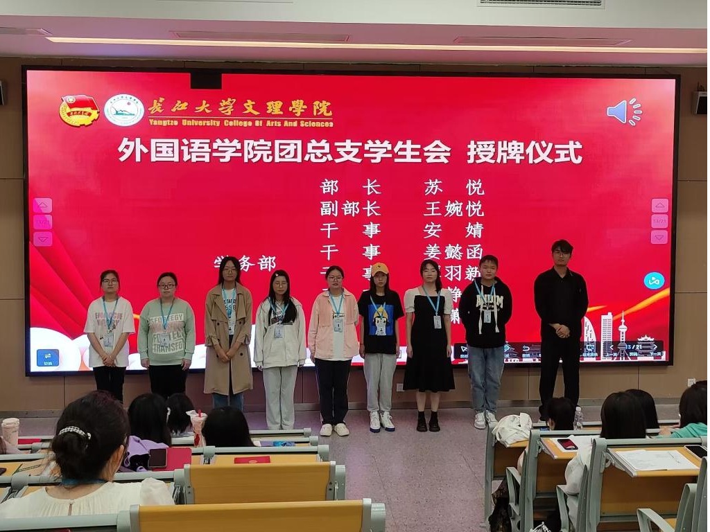 随后,副主席齐慕子宣读关于《2023-2024学年外国语学院团总支员工干部任职决定》的文件。在场老师为新一届员工会成员授牌。