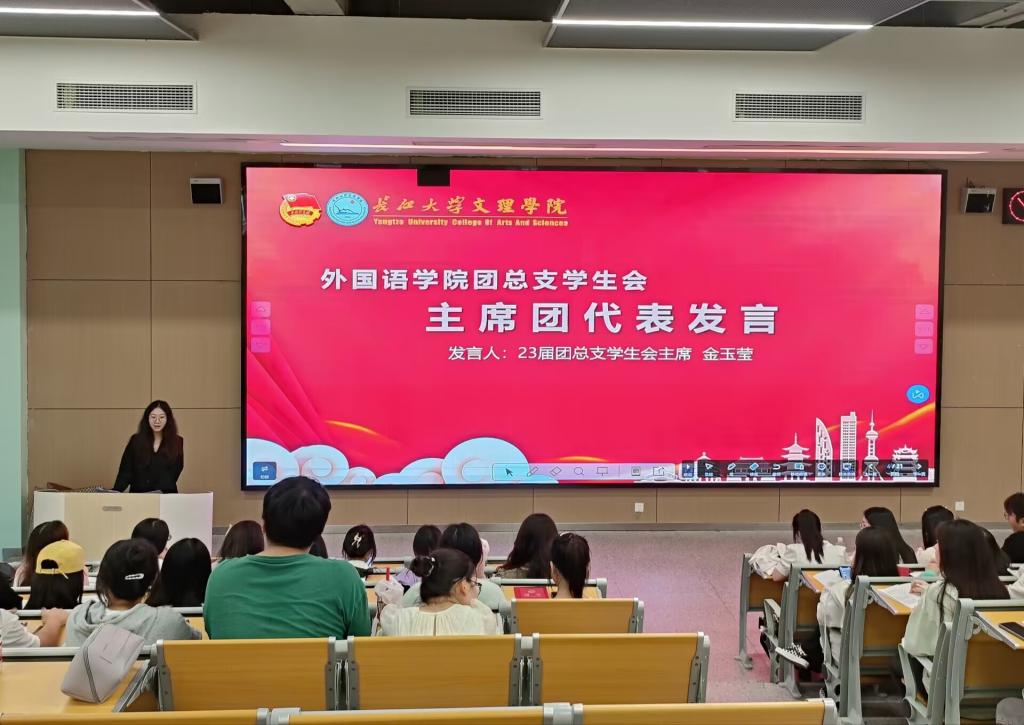 大会伊始,23届员工会副书记吴雪萍就2022-2023学年外国语学院团总支员工会员工工作进行展示;主席金玉莹发表讲话,并表达了对员工会的殷切期望。