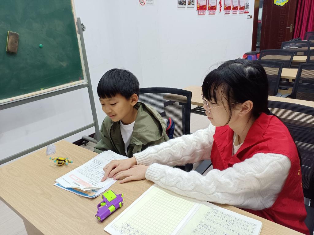 秋意深浓,金风飒飒,志愿者准时到达支教地点,耐心细致的辅导小朋友们写作业,而后拿出画笔陪他们绘画。小朋友们用画笔放飞梦想,执笔慢慢描绘,仿佛在他们心中装满了整个世界。志愿者陪小朋友们细心涂画,绘出一幅幅动人的作品,拉近了彼此之间的关系。