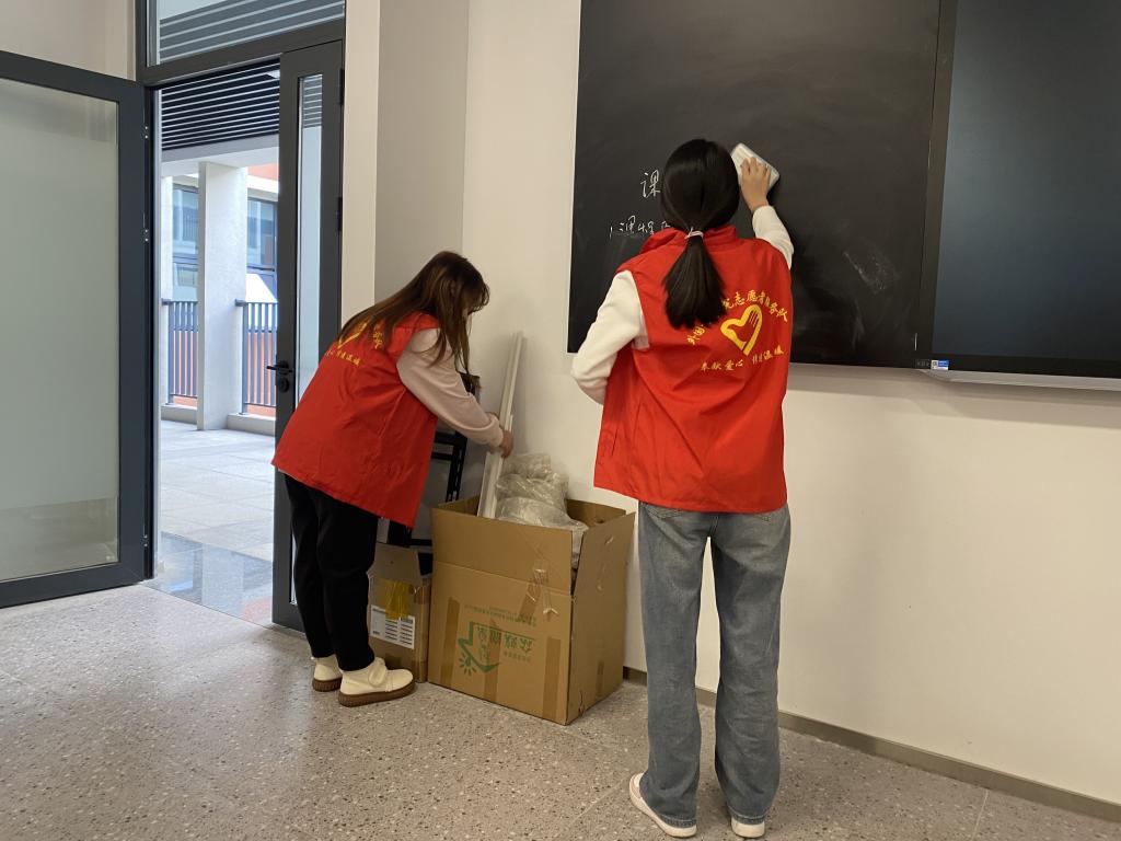 活动现场,主要对教室地面、讲台、书桌进行全方位清洁,并针对教室灰尘死角、杂物垃圾进行了重点清理,同时将桌椅摆放整齐。在清洁过程中,员工会干部积极配合安排,认真打扫,清理垃圾,不怕苦不喊累,齐心协力,相互配合,最终顺利地完成清扫任务。经过清扫,教室干净整洁,焕然一新。