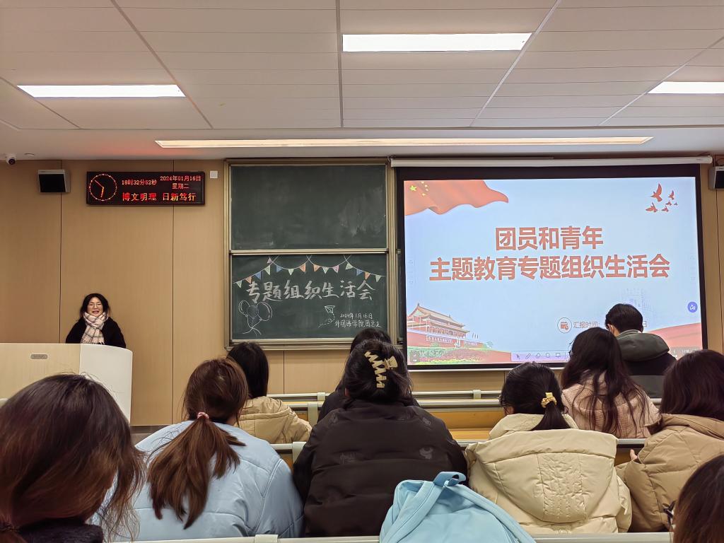 本网讯(通讯员 曹杰)为落实党的二十大作出的重大决策部署,聚焦“学思想、强党性、重实践、建新功”总要求,1月16日晚,团员和青年主题教育专题组织生活会在教学楼A-308M教室举行,本次会议由外国语学院团总支员工会组织部干事张会斯涵主持,辅导员钟燚、宋静静、侯韦,以及各班级团干部到场参加。