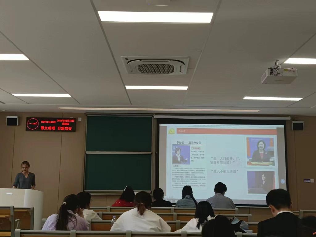 本网讯(通讯员 钟燚)为了持续深化学习宣传贯彻习近平新时代中国特色社会主义思想,激发广大青年员工的学习热情和创新精神,4月18日下午三点,外国语学院于1教308教室举办了“悦学习·跃青春—百生讲坛”优秀主讲人初赛活动。本次比赛旨在通过员工自己的讲述,让同学们更加了解和掌握这一重要思想的核心内容和精神实质。此次活动由外国语学院辅导员许静婷老师、钟燚老师、宋静静老师和侯韦老师担任评委。