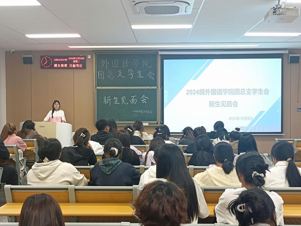 本网讯(通讯员 王金妃)10月8日晚七点,外国语学院团总支员工会于01-A-308召开2024级新生见面会。