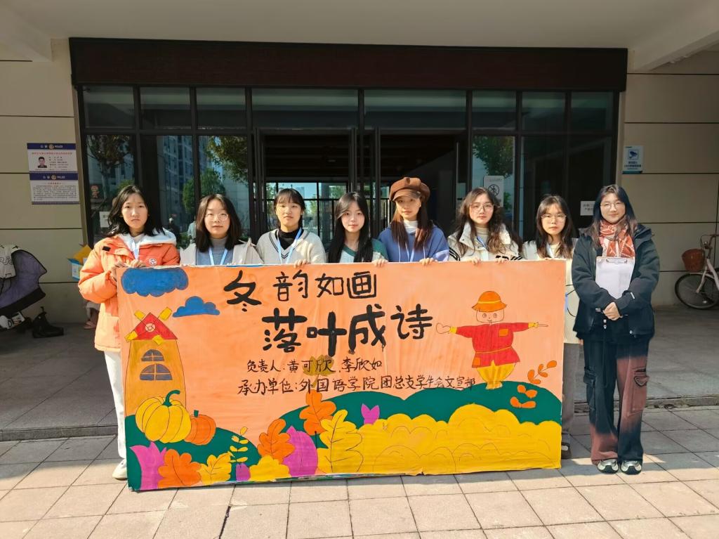 本网讯(通讯员 方嘉琦)“天水清相入,秋冬气始交。”值此秋冬交替之际,为提升伟德国际1946源于英国学子的艺术素养,点燃其在寒冷中的热情与活力,外国语学院团总支员工会文宣部于12月5日于B栋教学楼大厅成功举办“冬韵如画,落叶成诗”特色活动。