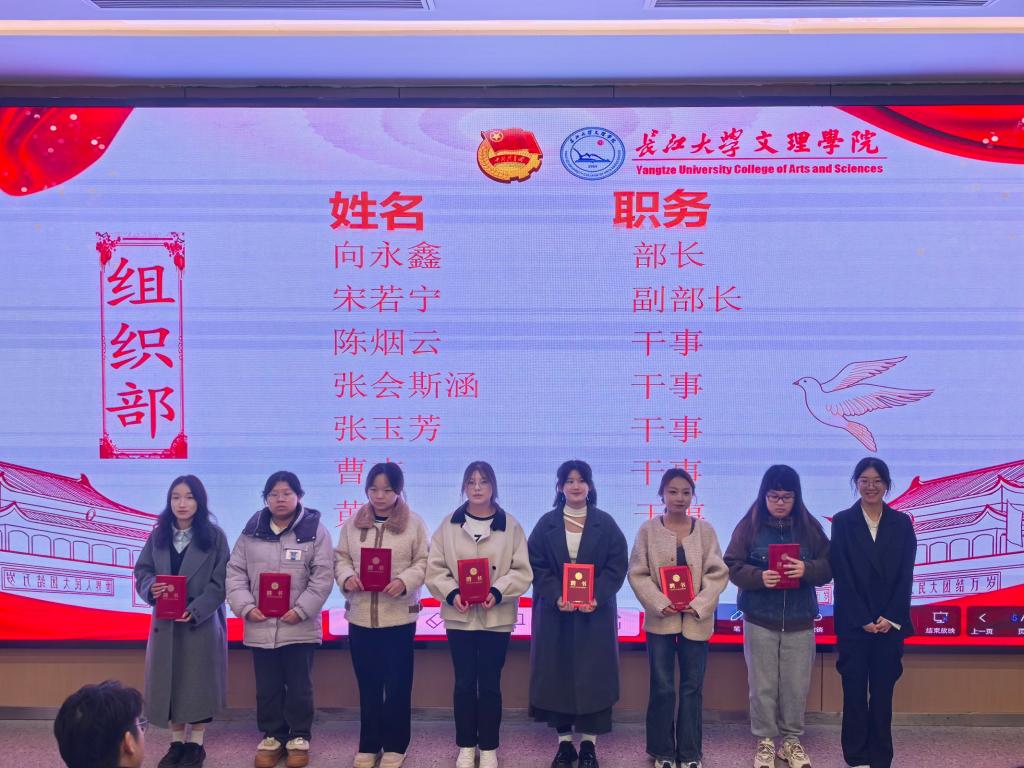 大会伊始,2023届员工会主席金玉莹上台回顾过去员工会的工作活动,向全体员工会成员致谢并对新一届提出期望与建议,期待新成员始终保持工作热情,紧密联系同学,切实服务大家。随后,老师们为各部门成员分发聘书并合影。副主席李晓红宣读《关于外国语学院2024-2025年度团总支员工会干部任命的决定》。接着,2023届全体员工会成员合影留念。