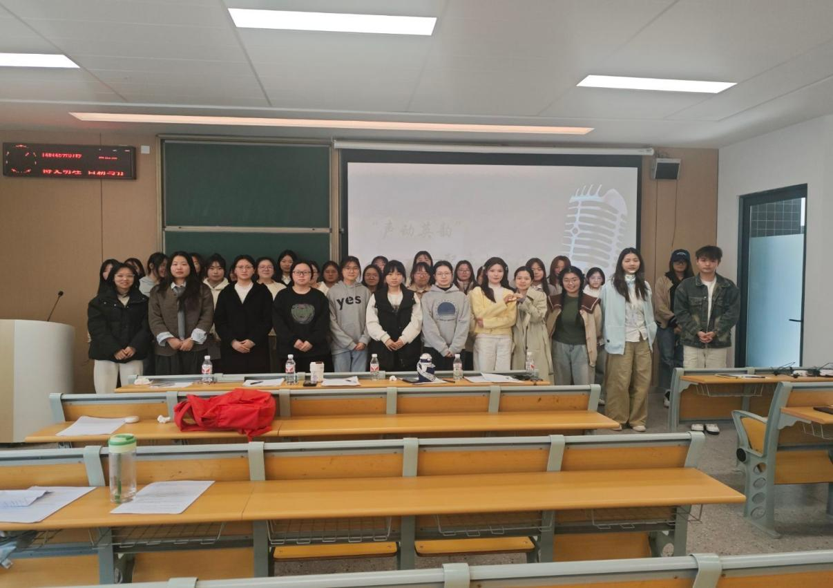 本网讯 (通讯员黎欣怡) 3月20日下午2点, 外国语学院团总支员工会学务部在教学楼A-308举办的以“声动英韵,影绎精彩”配音大赛。学务部干事仝陈婧颖担任主持。