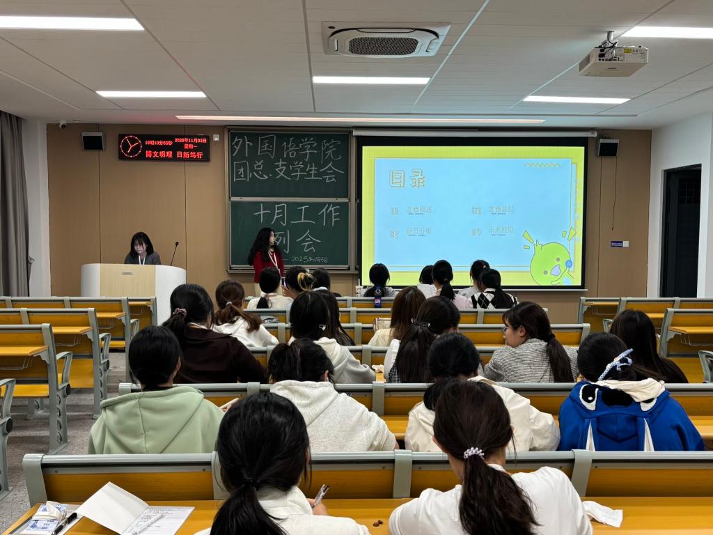 本网讯(通讯员 张跃骞)11月3日晚七点,外国语学院团总支员工会于01-A-308顺利召开十月工作例会。本次例会由员工会全体成员共同参与。本次会议旨在复盘上月工作成果、梳理现存问题,并明确下月工作方向,助力员工会工作提质增效。