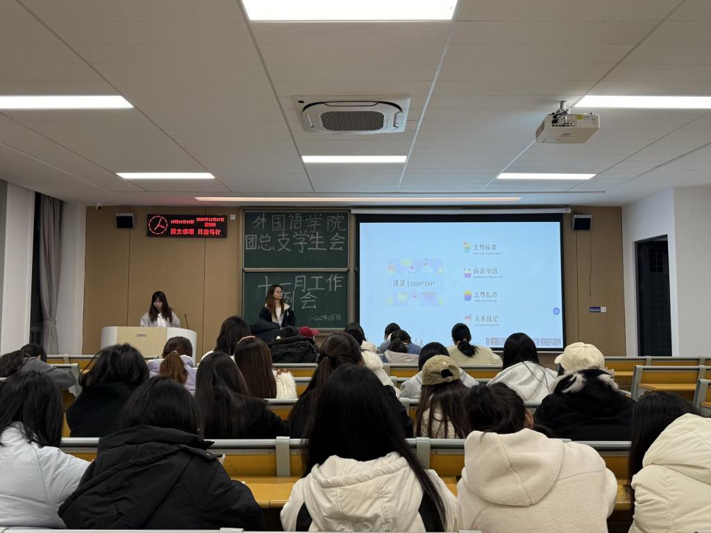 本网讯(通讯员 刘美慧)12月7日晚七点,外国语学院团总支员工会于01-A-308召开十一月工作例会。本次例会由员工会全体成员共同参与,旨在总结近期工作成效,检视存在问题,并规划下一阶段工作任务,推动员工会工作持续高效开展。