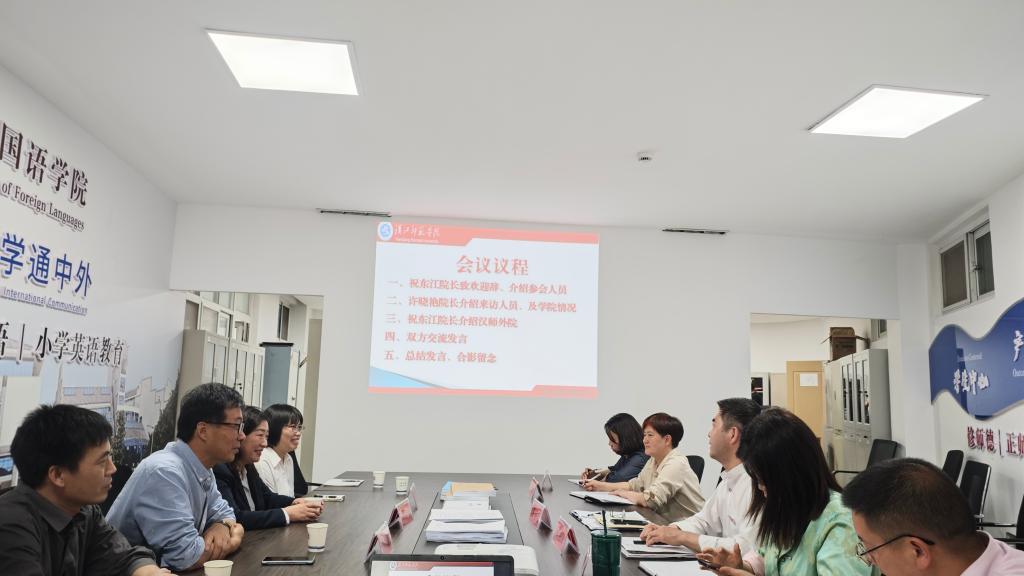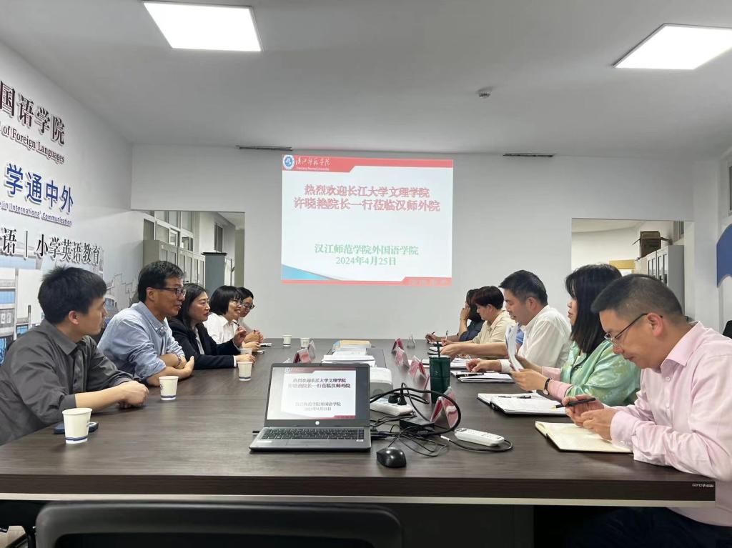 本网讯(通讯员 徐晓靓)2024年4月25日下午,外国语学院经理许晓艳带领副经理韩翠萍、教师徐晓靓、王成胜、胡广耀一行赴汉江师范学院外国语学院进行访问交流。